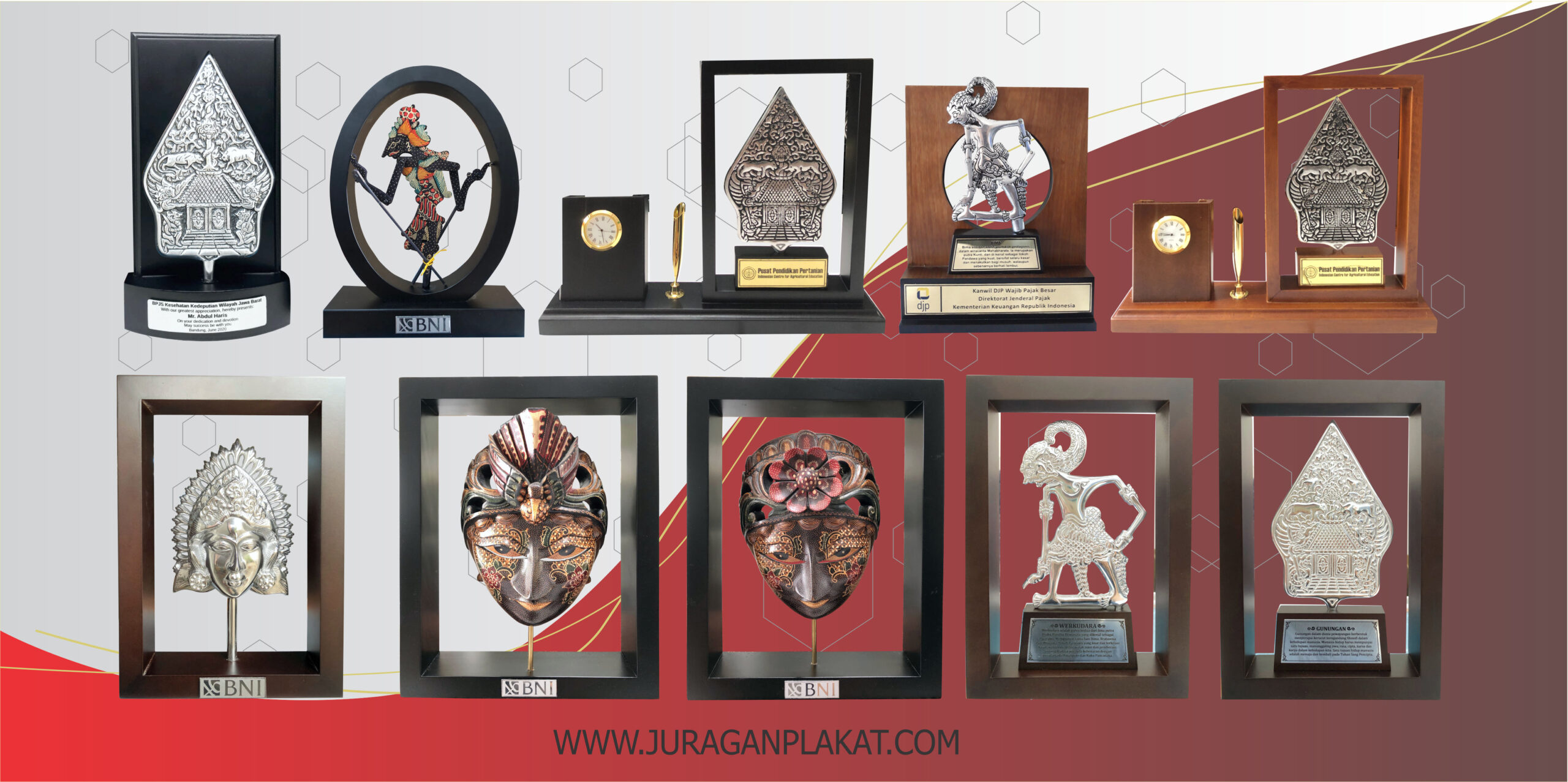 Kami adalah pengrajin yang begerak dalam bidang pembuatan souvenir, kami dengan Senang hati melayani anda. Untuk itu dengan senang hati kami menawarkan diri untuk menjalin kerjasama dengan para pelanggan di seluruh Indonesia. Kami merupakan pusat pembuatan plakat souvenir di jogja, seperti plakat kayu, boxs kayu/beludru, plakat fiber/resin, medali, plakat wayang, plakat akrilik, piala dan souvenir wisuda. Untuk model dan bentuk bisa custom, dengan berbagai ukuran.